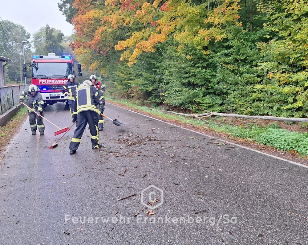 Um 12:20 Uhr wurden wir zu einem umgefallenen Baum auf die Frankenberger Straße nach Mühlbach alarmiert.