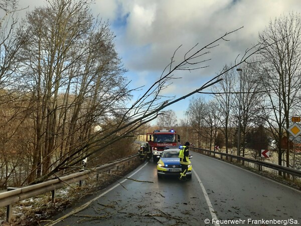 Um 11:27 Uhr wurden wir zu einem umgestürzten Baum auf die B169 in Richtung Chemnitz alarmiert.