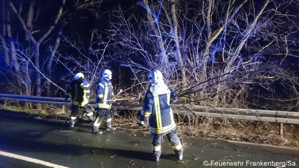 Der zweite Einsatz in dieser Sturmnacht kam 3:35 Uhr. Hier war auf der S202 Richtung Sachsenburg ebenfalls ein Baum umgefallen.