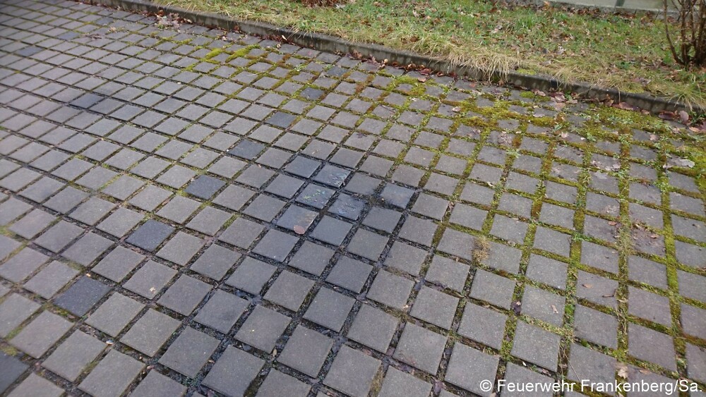 Diese entfernten wir mit einem Sack Bindemittel und der Unterstützung der Kehrmaschine des Bauhofes.