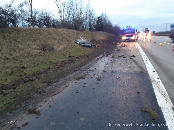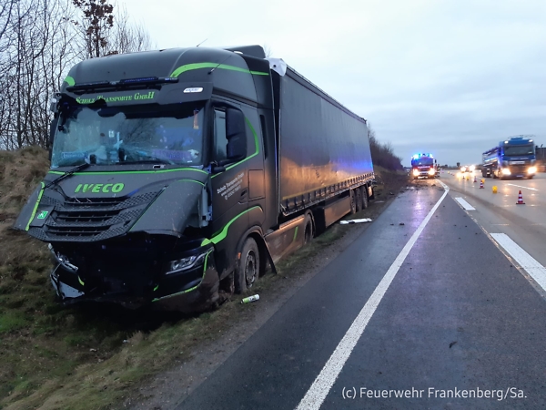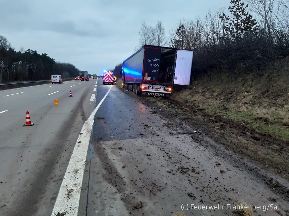 Vor Ort angekommen, bestätigte sich diese Meldung nicht. Der LKW war verunfallt und stand im Straßengraben. Da die Fahrerin unverletzt war, keine Betriebsmittel ausliefen und die Ladung auch keinen Schaden genommen hatte, mussten wir lediglich die rechte Fahrspur absperren und auf den Bergedienst und die Autobahnmeisterei warten.