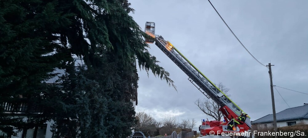 Wir fuhren mit der Drehleiter die Einsatzstelle an und beseitigten die Gefahrenlage.