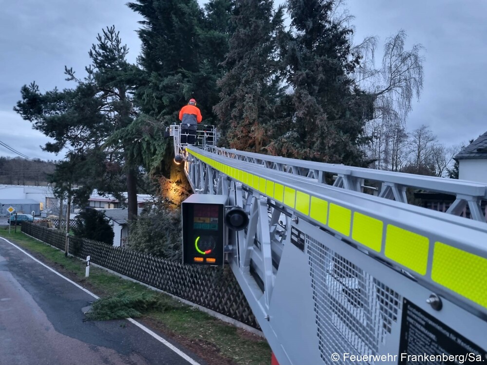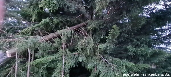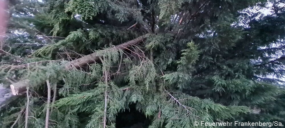 Gegen 17 Uhr wurden wir telefonisch über einen quer über die Fahrbahn hängenden Ast in der Ortslage Sachsenburg informiert.