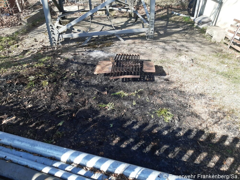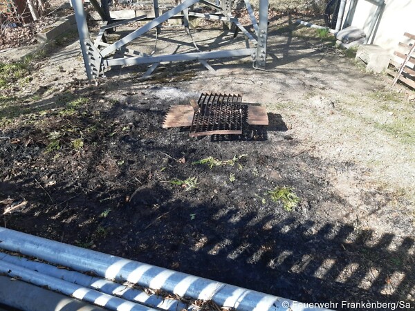 Dort brannten etwa 2 m² Boden, welcher durch Passanten bereits abgelöscht wurde. Um sicher zu gehen, dass keine Glutnester die Fläche erneut aufflammen lassen, löschten wir das Areal nochmals mit Wasser ab.
