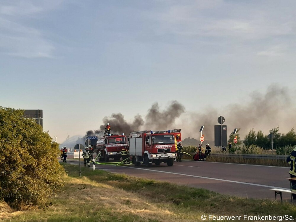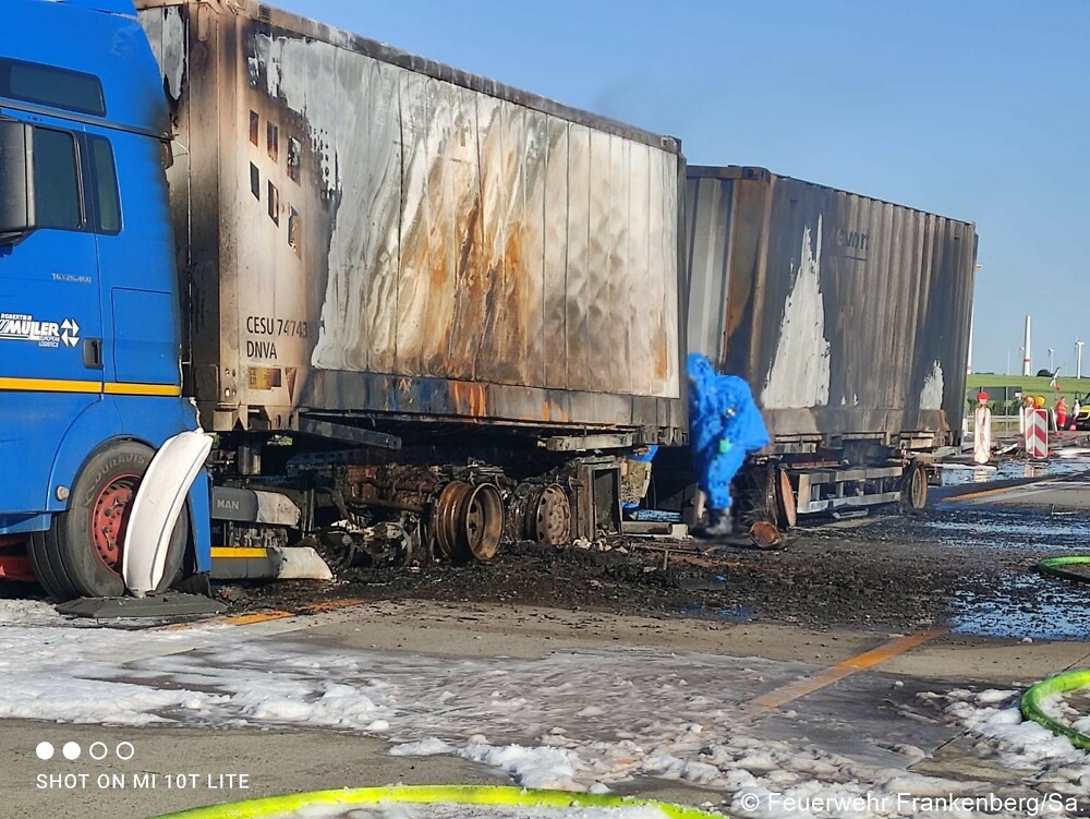 Am Samstagmorgen wurde um 4:05 Uhr der Gefahrgutzug Nord des Landkreises Mittelsachsen, zu welchem auch speziell ausgebildete Kameraden unserer Feuerwehr gehören, zu einem brennenden Gefahrgut-LKW auf die BAB 14 an der Abfahrt Leisnig alarmiert.