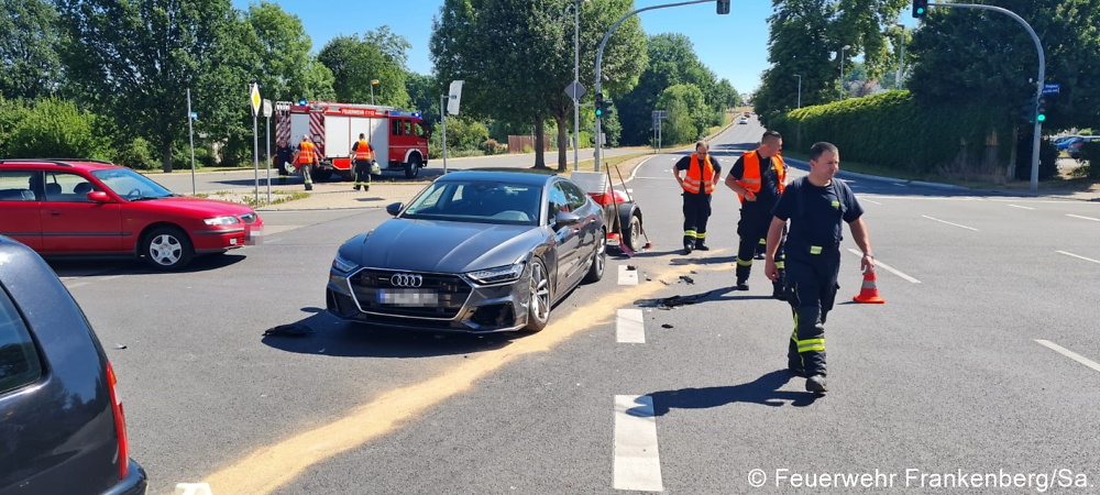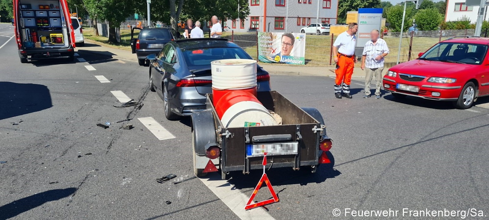 Um 10:15 Uhr kamen wir bei einer Fahrt durchs Stadtgebiet zufällig an einer Unfallstelle auf der Jochen-Köhler-Straße Kreuzung Merzdorfer Straße vorbei.