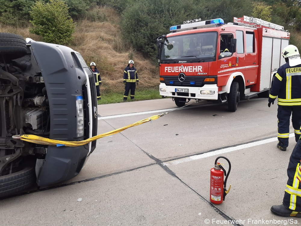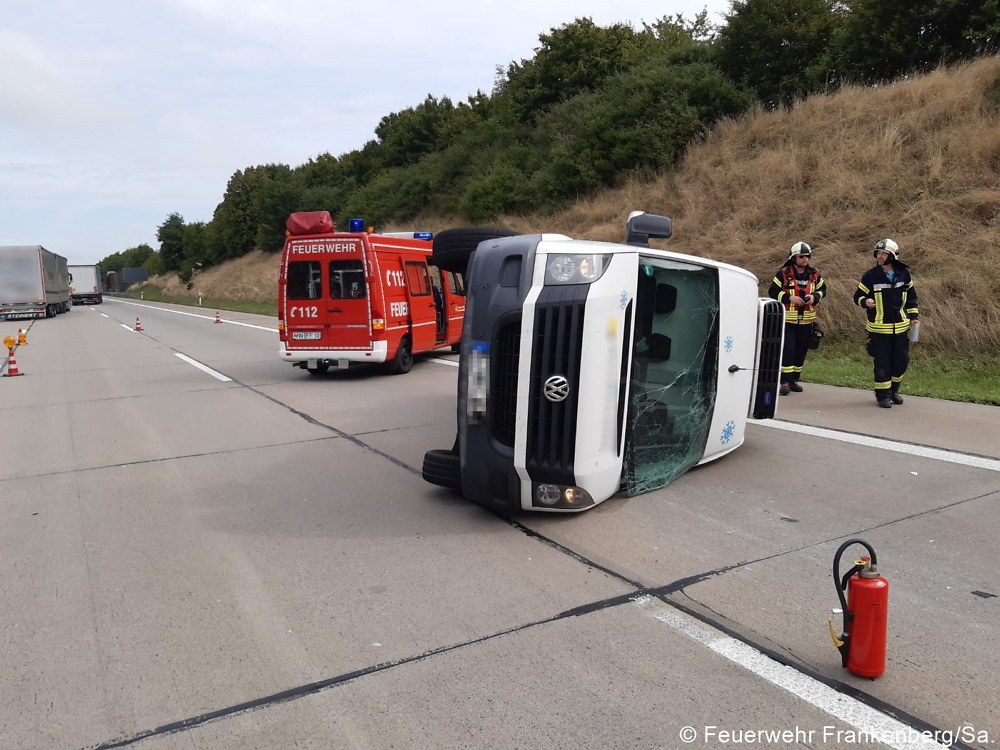 Um 10:45 Uhr wurden wir auf die A4 gerufen. Ein Transporter war aus bisher ungeklärter Ursache ins Schleudern geraten und kam auf der Seite zum Liegen.