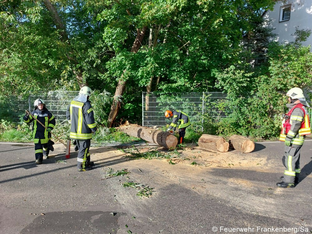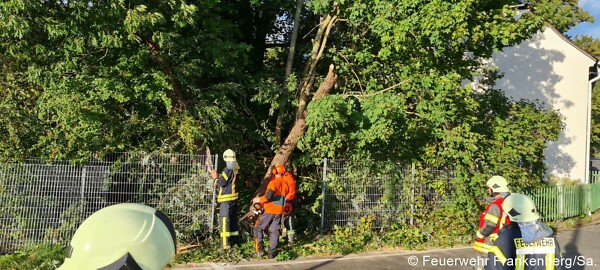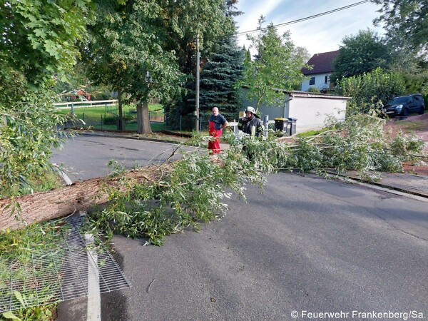 Um 16:40 Uhr wurden wir auf die Frankenberger Straße nach Mühlbach zu einem umgestürzten Baum alarmiert.