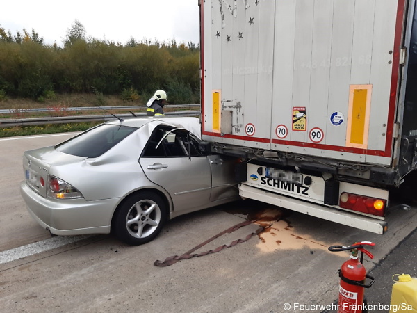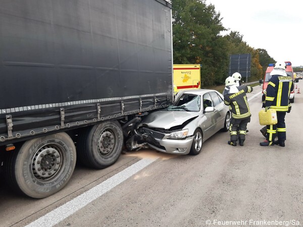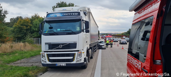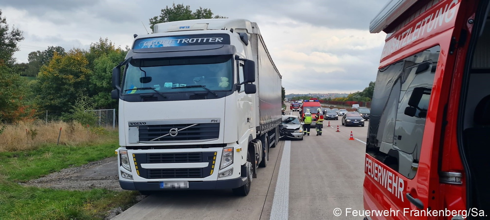 Um 10:43 Uhr wurden wir zu einem Verkehrsunfall mit eingeklemmter Person auf die A4 in Richtung Chemnitz alarmiert.