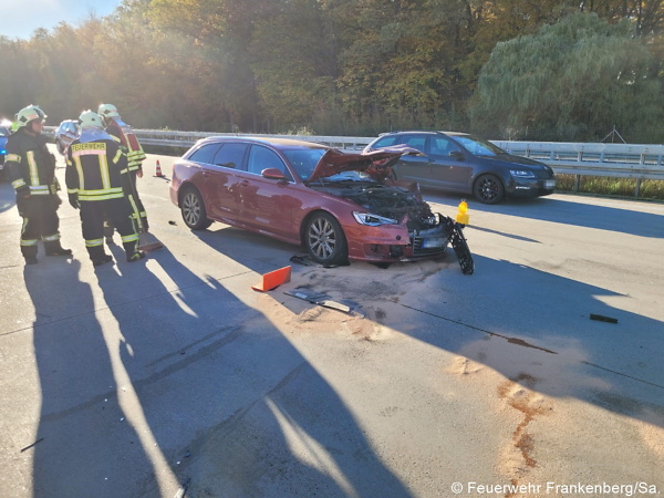 Um 15:29 Uhr wurden wir zu einem Verkehrsunfall auf die BAB 4, Fahrtrichtung Dresden, alarmiert. Hier kam es zu einem Unfall zwischen einem LKW und 2 PKW. Dabei wurden 6 Personen verletzt, eine davon schwer.