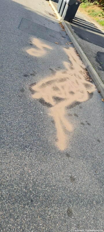 Um 12:00 Uhr erhielten wir telefonisch die Meldung über eine Straßenverunreinigung durch vermutlich Bremsflüssigkeit auf der Max-Kästner-Straße.