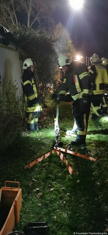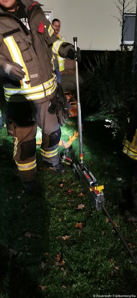 Vor Ort angekommen sicherten wir den Baum, leuchteten die Einsatzstelle aus und brachten anschließend unseren Greifzug in Stellung. Mit dessen Hilfe gelang es uns den Baum umzulegen.