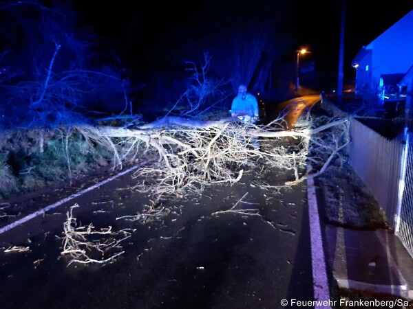 Um 0:52 Uhr wurden wir in die Oberdorfstraße nach Mühlbach alarmiert. Dort ist in der Nacht duch starken Wind ein Baum auf die Straße gefallen.