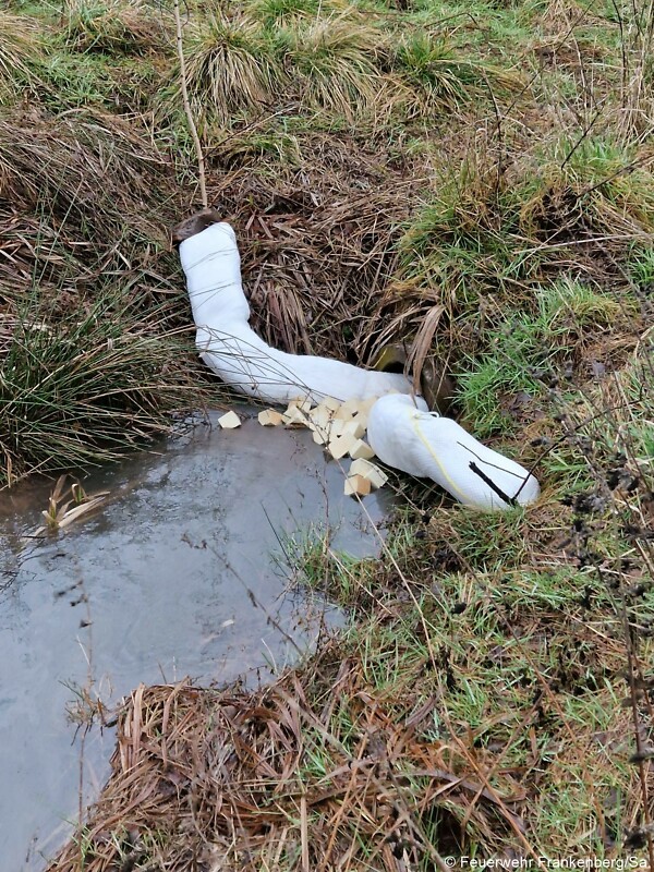 Wir verständigten daraufhin die Ölwehr, die diese Verunreinigung maschinell beseitigte und den Abwasserzweckverband, der sich um die Kanalisation kümmerte. Im Anschluss legten wir im nahegelegenen Bach noch eine Ölsperre, um die Ausbreitung zu minimieren und kontrollierten den betreffenden Bereich.