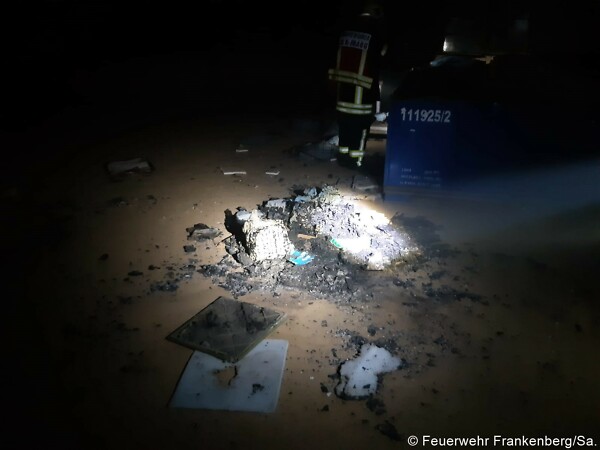 Vor Ort angekommen, öffneten wir zuerst das Tor, um auf das Gelände zu kommen. Nachdem wir dann den Bereich gefunden hatten, aus dem der Rauch zu sehen gewesen war, begannen wir mit der Lageerkundung. Hier gestaltete es sich schwierig, einen Zugang zur Halle zu finden. Als dies gelang und wir die vollständig verqualmte Halle betreten konnten, stellte sich recht schnell heraus, dass der Brand bereits von selbst erloschen war. Wir kontrollierten dennoch die Umgebung und durchsuchten die Halle, ob sich noch Personen dort aufhielten. Weiterhin bauten wir für die Polizei noch etwas Licht auf und belüfteten den Bereich, damit der Rauch schneller abzieht.