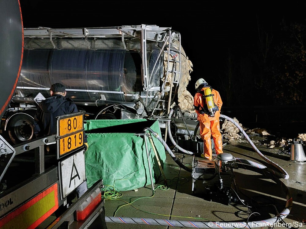 Wir pumpten den Inhalt des Tankes in einen anderen, extra dafür organisierten LKW, um. Dies nahm mehrere Stunden in Anspruch.