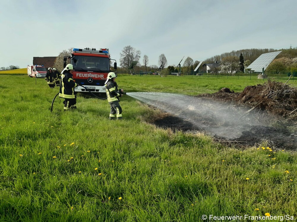 Auf einem Feld war ein größeres Lagerfeuer vom Sonntag wieder in Brand geraten. Wir wässerten die Brandstelle und waren nach einer Stunde wieder einsatzbereit im eigenen Standort.