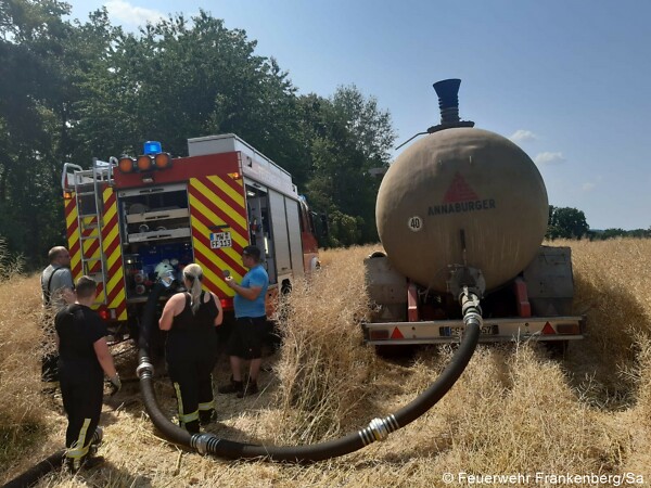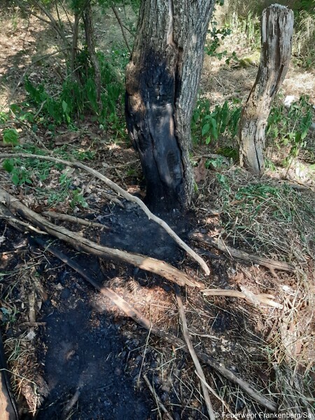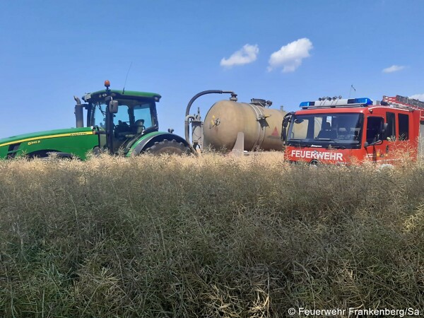 Zunächst bekämpften wir den Brand mit zwei Löschrucksäcken und einem C-Rohr. Da unser Löschwasser begrenzt war, musste eine schnelle Lösung her. Dank zweier Mitarbeiter der Seifersbacher Land AG, welche mit 2 Traktoren und einem großen Wasserfass anrückten, gelang es uns nach mehreren Stunden das Feuer in den Griff zu bekommen. An dieser Stelle einen großen Dank an die zwei und die Seifersbacher Land AG. So konnte die Fläche mit 3 C-Rohren und ca. 17.000 Liter Wasser abgelöscht werden.