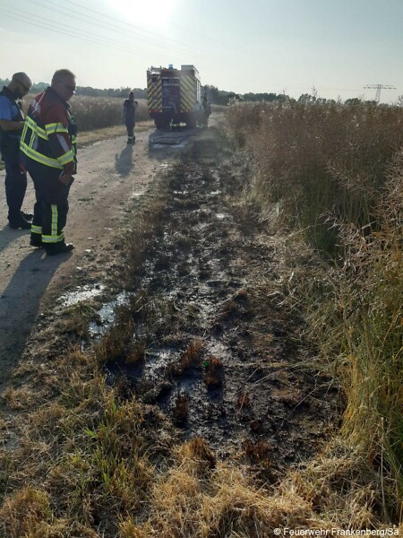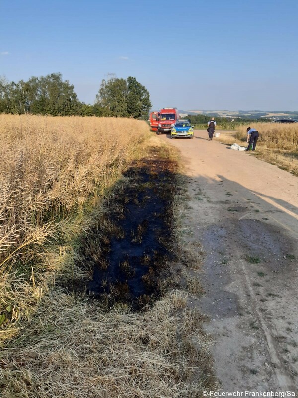 Dank eines zufällig an der Einsatzstelle vorbeigefahrenen Kameraden konnte die Ausbreitung glücklicherweise verhindert werden, da dieser die ersten Löschversuche unternahm. Als wir an der Einsatzstelle angekommen waren, blieb für uns nur noch, die betroffene Stelle und die umliegende Fläche ordentlich zu wässern.