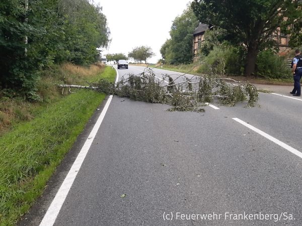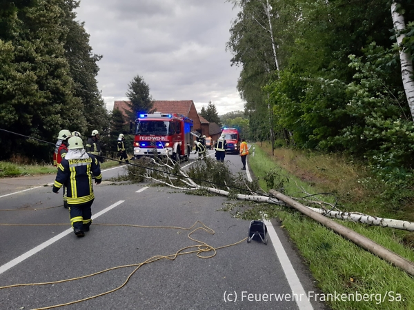 Um 08:42 Uhr wurden wir auf die Äußere Chemnitzer Straße gerufen. Hier ist ein Baum umgefallen und hat das Telefonkabel mit herunter gerissen. Dabei kam der Telefonmast, welcher sich unmittelbar neben dem Baum befand, mit zu Fall.