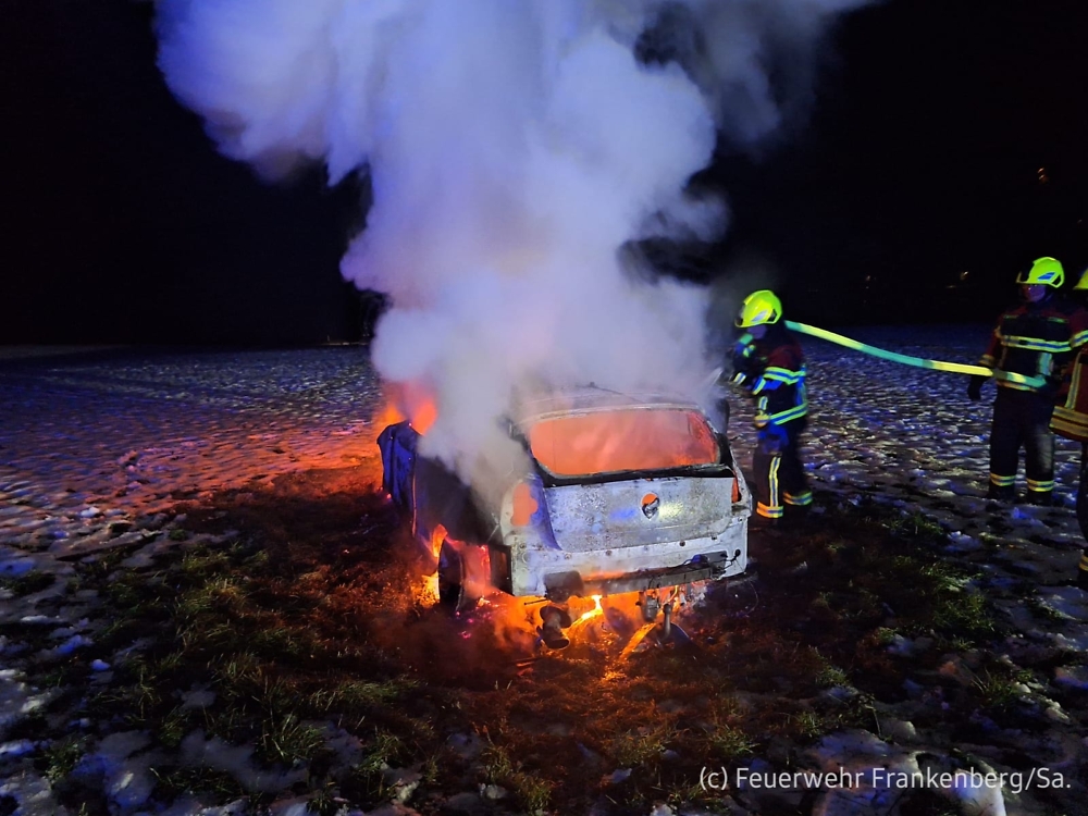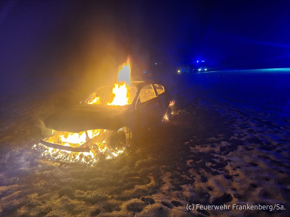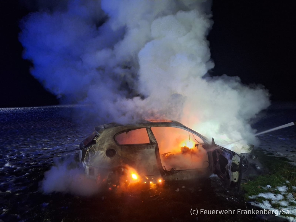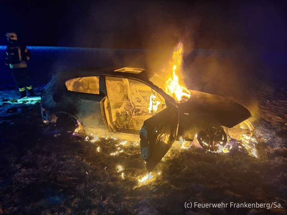 Vor Ort angekommen, handelte es sich um einen PKW, der auf einem Feld ca. 40 Meter abseits der Straße abgestellt war. Dieser befand sich bereits in Vollbrand. Mit einem C-Rohr konnte das Feuer aber relativ zügig gelöscht werden.