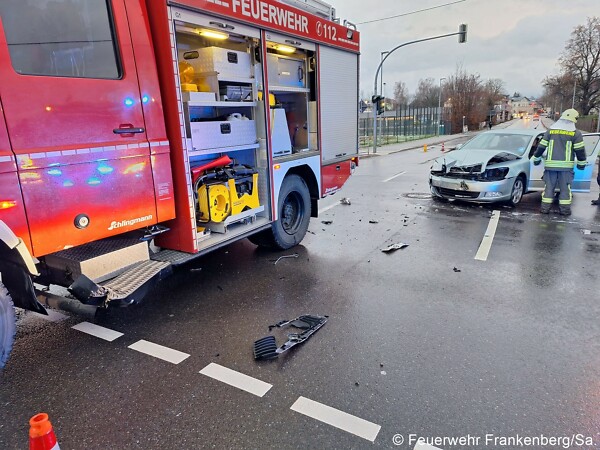 Leider ereignete sich auf der Fahrt zum Einsatzort ein weiterer Verkehrsunfall, an dem unser Tanklöschfahrzeug beteiligt war. Beim Überqueren der Kreuzung Max-Kästner-Straße / Badstraße missachtete ein PKW Fahrer sowohl unser Blaulicht als auch unser Sondersignal. Er fuhr nahezu ungebremst in unser Fahrzeug hinein. Das Tanklöschfahrzeug ist bis auf weiteres nicht mehr einsatzbereit.