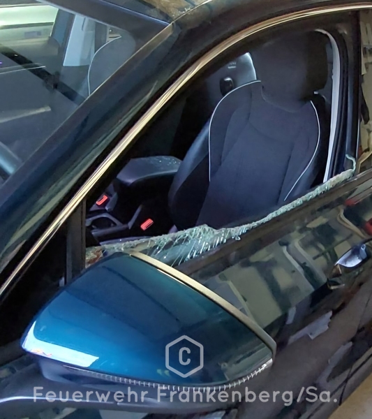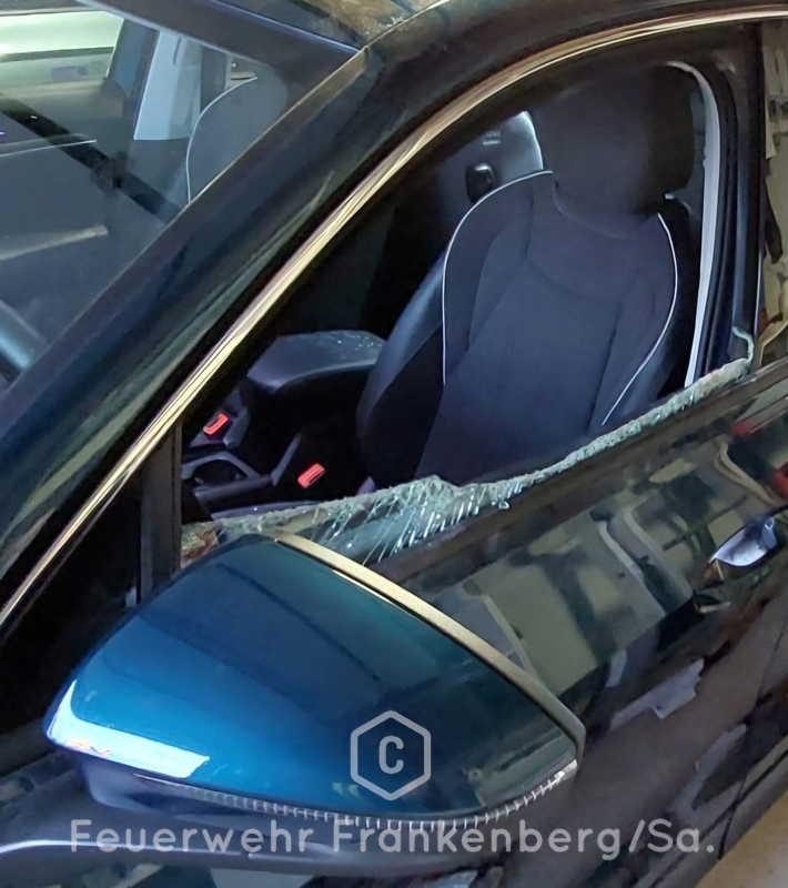 Vor Ort hatte ein Angehöriger bereits versucht, die Seitenscheibe einzuschlagen, konnte jedoch das Auto nicht öffnen. Wir entfernten die restliche Scheibe, sodass ein Kamerad ins Auto steigen und es mit dem Schlüssel öffnen konnte.