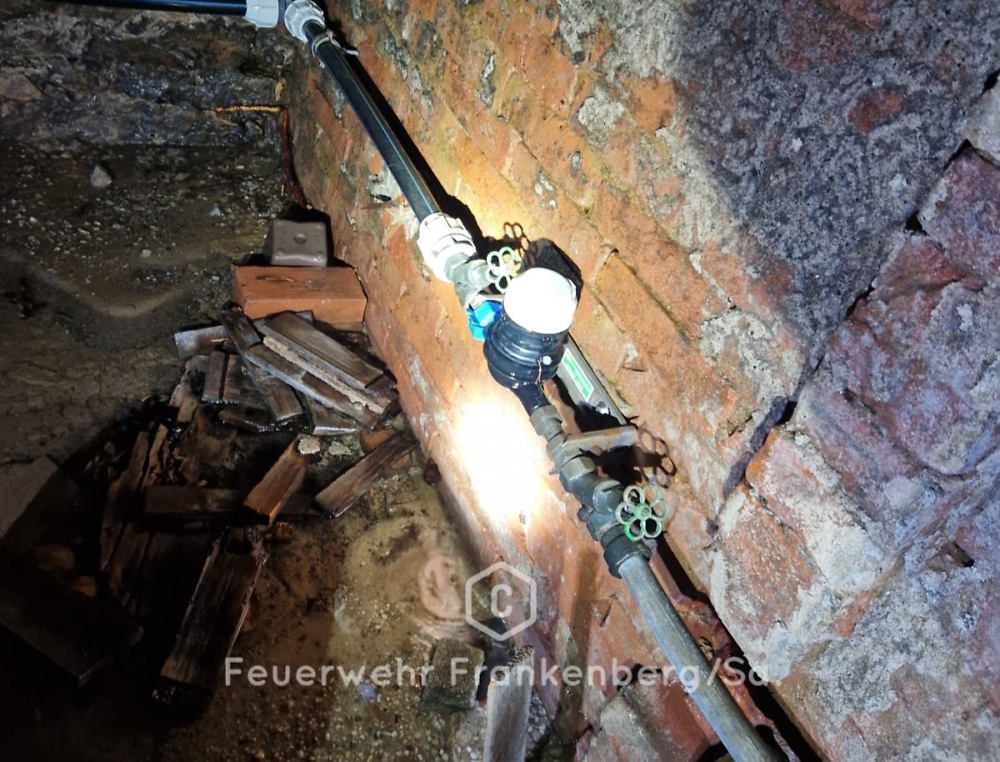 Vor Ort verschafften wir uns Zugang zum Haus. Im Keller war durch den Frost der vergangenen Tage die Wasseruhr geborsten und dadurch Wasser ausgetreten. Wir stellten das Wasser ab und konnten wenig später die Einsatzstelle wieder verlassen.
