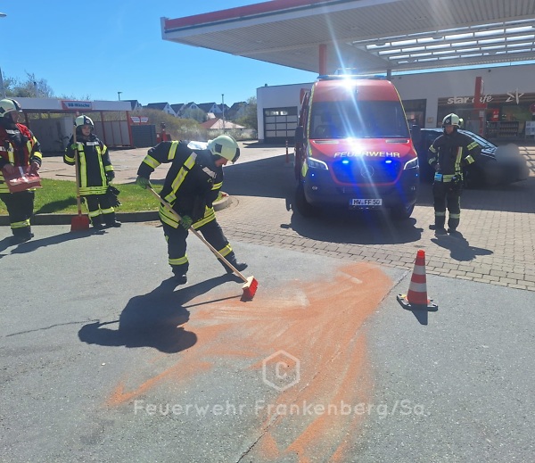 Im Stadtgebiet waren mehrere Ölflecken zu sehen. Wir stumpften diese mit Ölbindemittel ab und beseitigten somit die Gefahrenstellen.