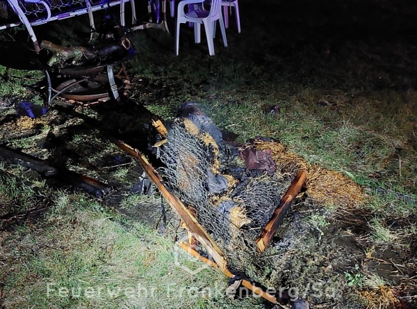 Vor Ort fanden wir in dem betreffenden Garten eine Feuerstelle vor, auf der ein altes Sofa verbrannt worden war. Personen konnten wir in dem Garten keine antreffen. Wir löschten den Brand mittels Schnellangriffsleitung ab und kontrollierten im Nachgang den Bereich mit der Wärmebildkamera.